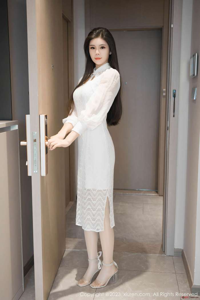 蕾丝社 » [XIUREN秀人网] 2023.10.25 NO.7559 雪糕CiCi 性感白色旗袍 [76+1P704M]