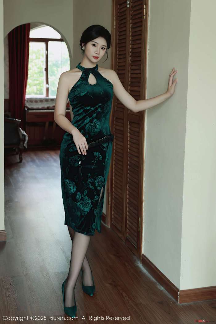 模特@南乔 型感写真发布,型感墨绿色旗袍,型感墨绿色蕾丝内衣搭配型感魅惑嘿丝,白皙皮肤更加娇嫩欲滴。全套写真共72P足量放送,希望大家多多支持!