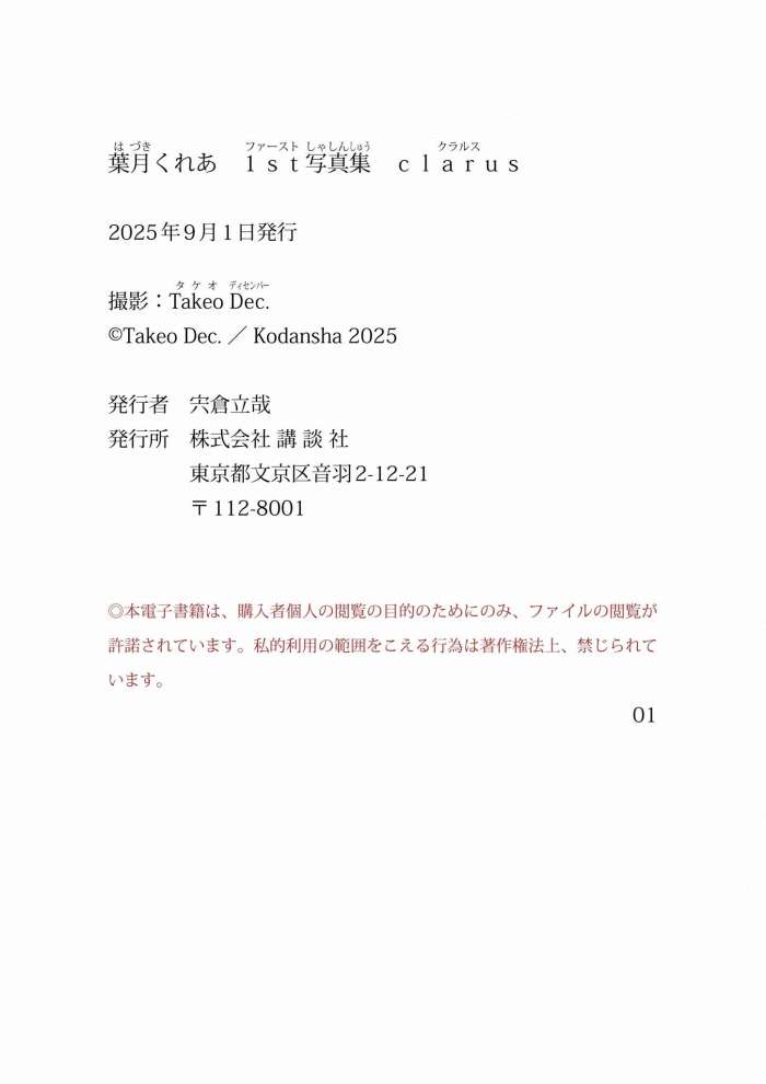 Kurea Hazuki (葉月くれあ) – 【電子版だけの特典カットつき】 1st写真集 clarus [151P138MB]