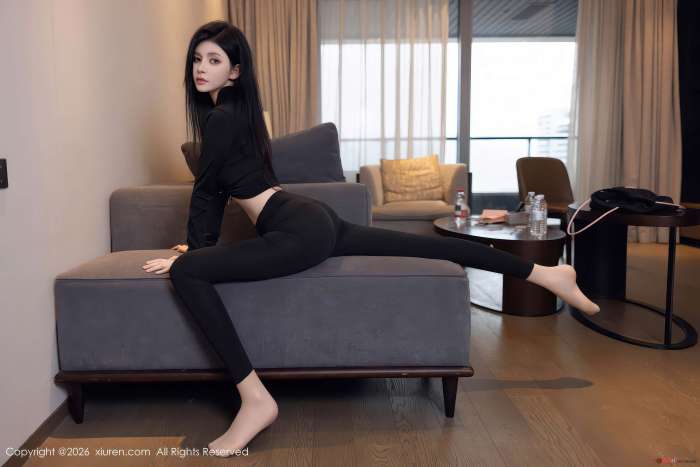 清晨窗光洒落,捕捉沈如斯在私享空间中的松弛状态。黑色西装外套线条利落,隐约勾勒身形,搭配极薄丝袜,将视觉重心引向流畅的腿部线条。材质肌理与光影交织,在近 85 张画面中,为整体造型注入毫不费力的时髦感。高跟鞋的亮面材质与内敛的黑色调形成反差,不经意间流大胆风格性感韵味。