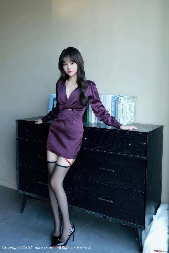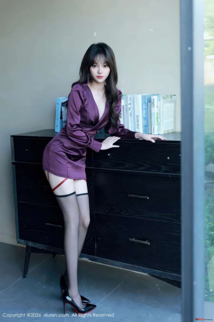 缎面在光影中流动,紫调深邃,似夜幕低垂。糯咪的轮廓在丝袜包裹下更显细腻,黑色的薄纱透出肌肤的温润光泽,纤细吊带隐约。镜头捕捉着光线微妙的变化,在肌肤与织物间流转,70幅画面,定格着专属的性感代码。高级灰的基调之上,是情绪的延展。视线最终落定,停留在未完成的故事里。